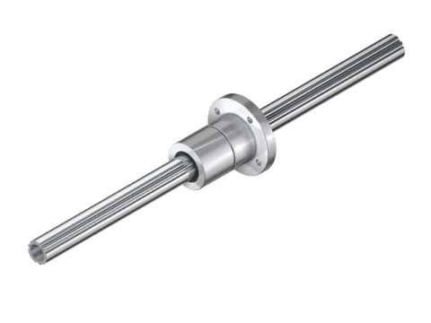 Die Ball Spline, auch bekannt als Kugelnutwelle, ist eine verdrehgesicherte Wellenführung, die hauptsächlich aus einer mit Stahlkugeln befüllten Mutter und einer Spindel mit mehreren paarweise angeordneten Längsnuten besteht. Die Stahlkugeln rollen sich in den Laufbahnen zwischen Mutter und Spindel in einem geschlossenen Kreislauf ab und ermöglichen der Mutter eine reibungsarme lineare Bewegung entlang der Spindel mit hoher Präzision. Der Winkelkontakt zwischen den Stahlkugeln und der Laufbahn in Mutter und Spindel ermöglicht die Aufnahme von Radialkräften und Drehmomenten.