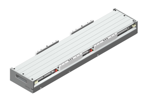 Bedingt durch den Direktantrieb der Achse können lange Verfahrwege realisiert und mit mehreren Verfahrschlitten, die unabhängig voneinander verfahren, ausgestattet werden.