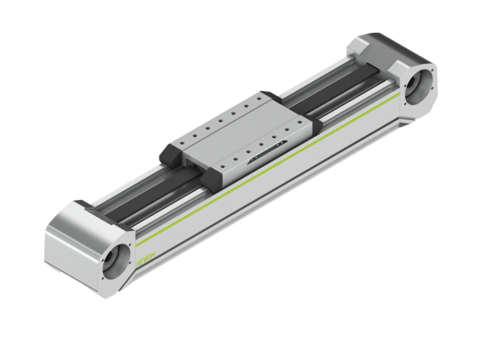 Zahnriemenachse als Brückenachse sind mit einem geschlossenen Aluminiumprofil und außenliegender Doppelführung in O-Anordnung ausgestattet. Dadurch sind diese Zahnriemenachsen besonders torsionssteif und für höchste Momentenbelastbarkeiten ausgelegt. Die flexibel einsetzbaren Positioniermodule eignen sich durch den Zahnriemenantrieb speziell für Anwendungen, bei denen hohe Vorschubkräfte und hohe Geschwindigkeiten gefordert sind.